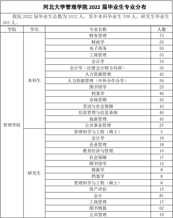 目前,学院设有博士后流动站1个:管理科学与工程;一级学科博士学位授权点2个:管理科学与工程、图书情报与档案管理;一级学科硕士学位授权点4个:管理科学与工程、工商管理、公共管理、图书情报与档案管理;其中包含10个学术型研究生二级学科学位点,6个专业硕士学位点。
